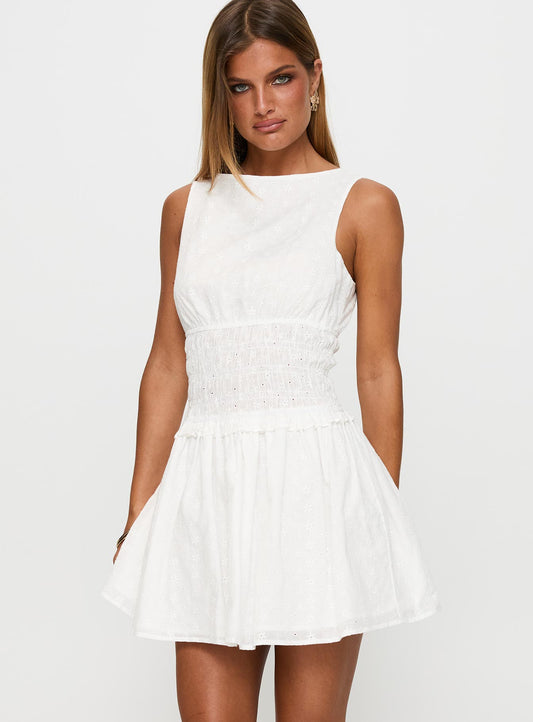 27% İndirimYennifer Büzgülü Broiderie Mini Elbise Beyaz