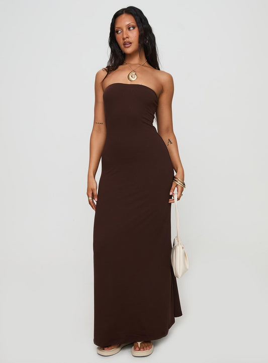 31% İndirimBellaire Straplez Uzun Elbise Kahve
