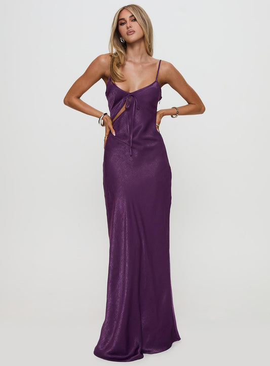 Rosaminta Boyundan Bağlamalı Maxi Elbise Mürdüm Petite
