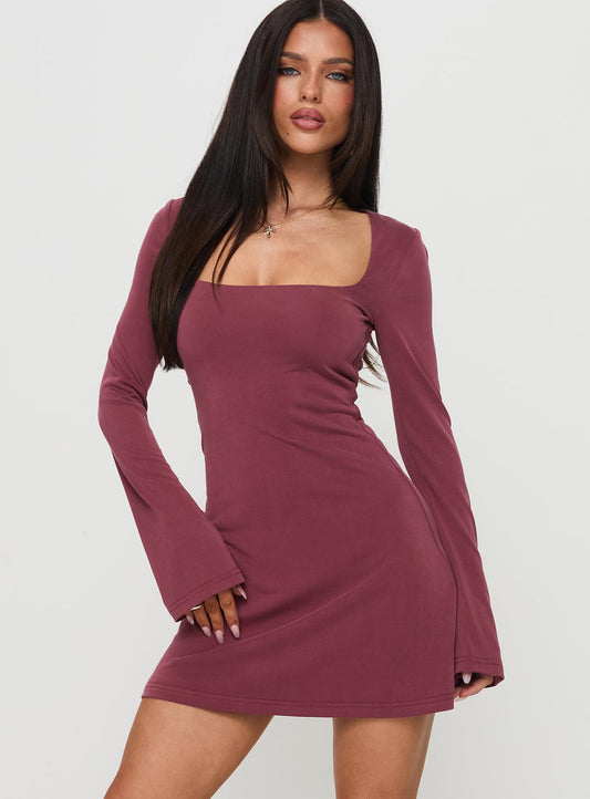 31% İndirimBüyüleyici Uzun Kollu Mini Elbise Bordo
