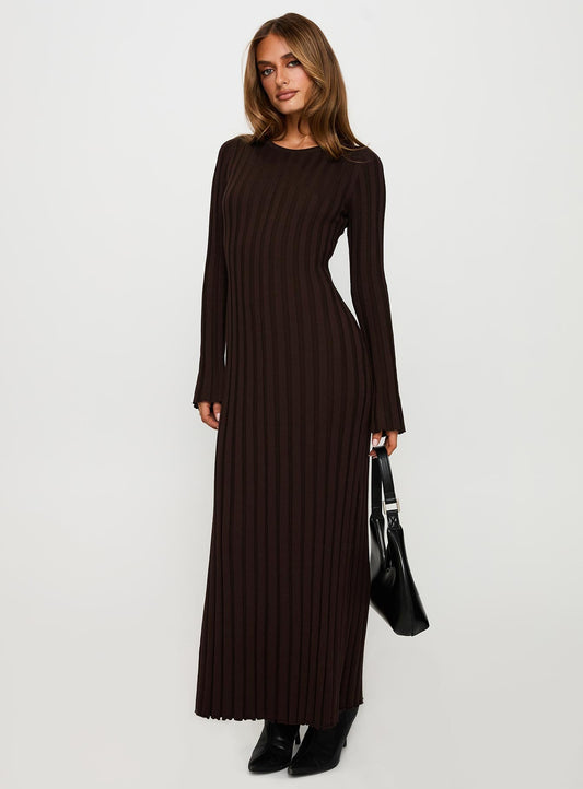 18% İndirimVespa Uzun Kollu Maxi Elbise Kahve
