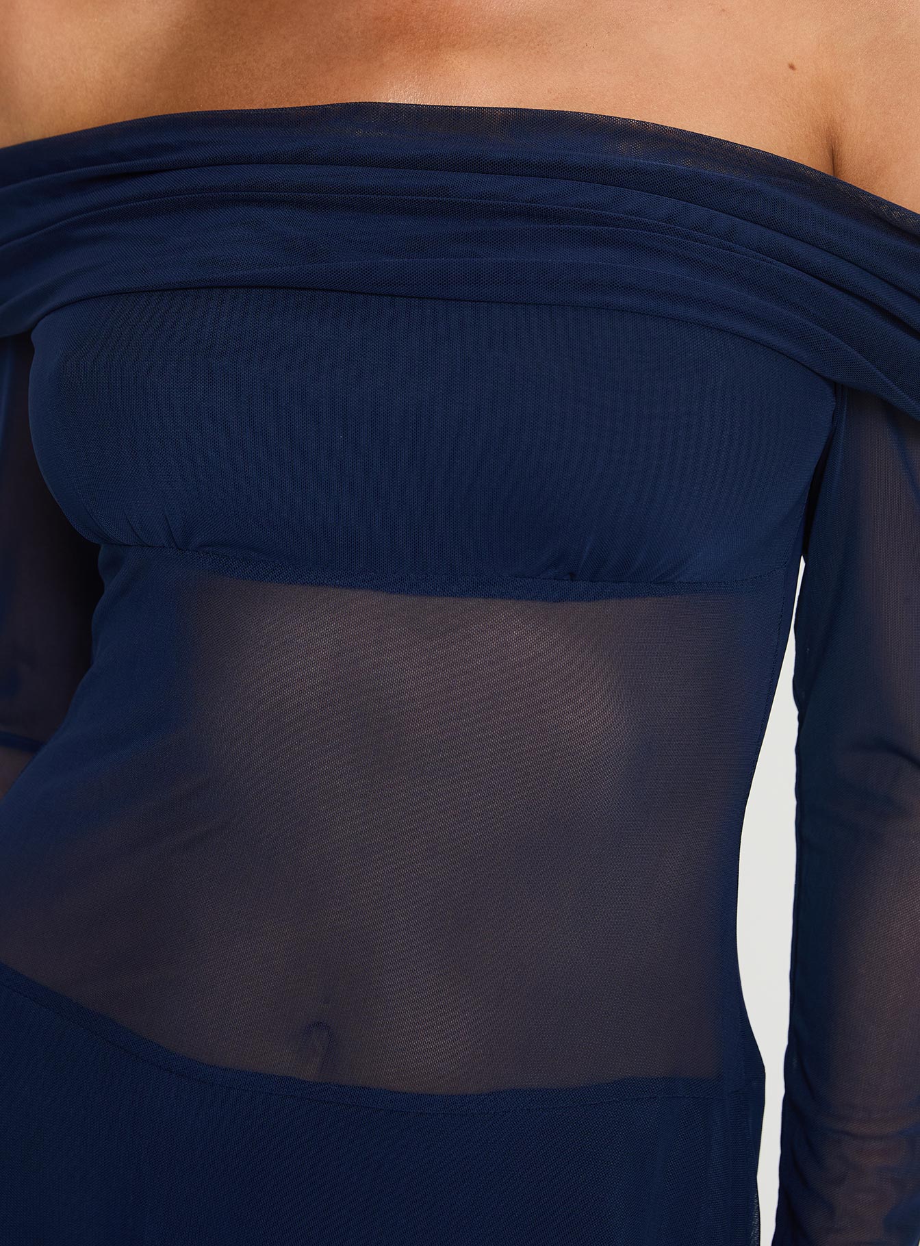 Virtues Uzun Kollu Transparan Mini Elbise Lacivert